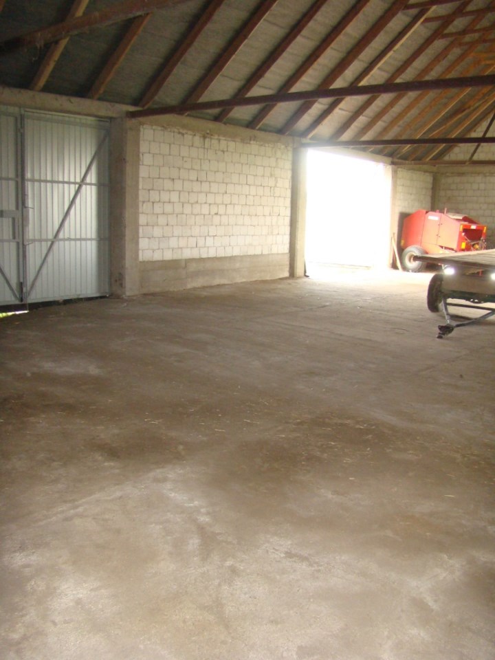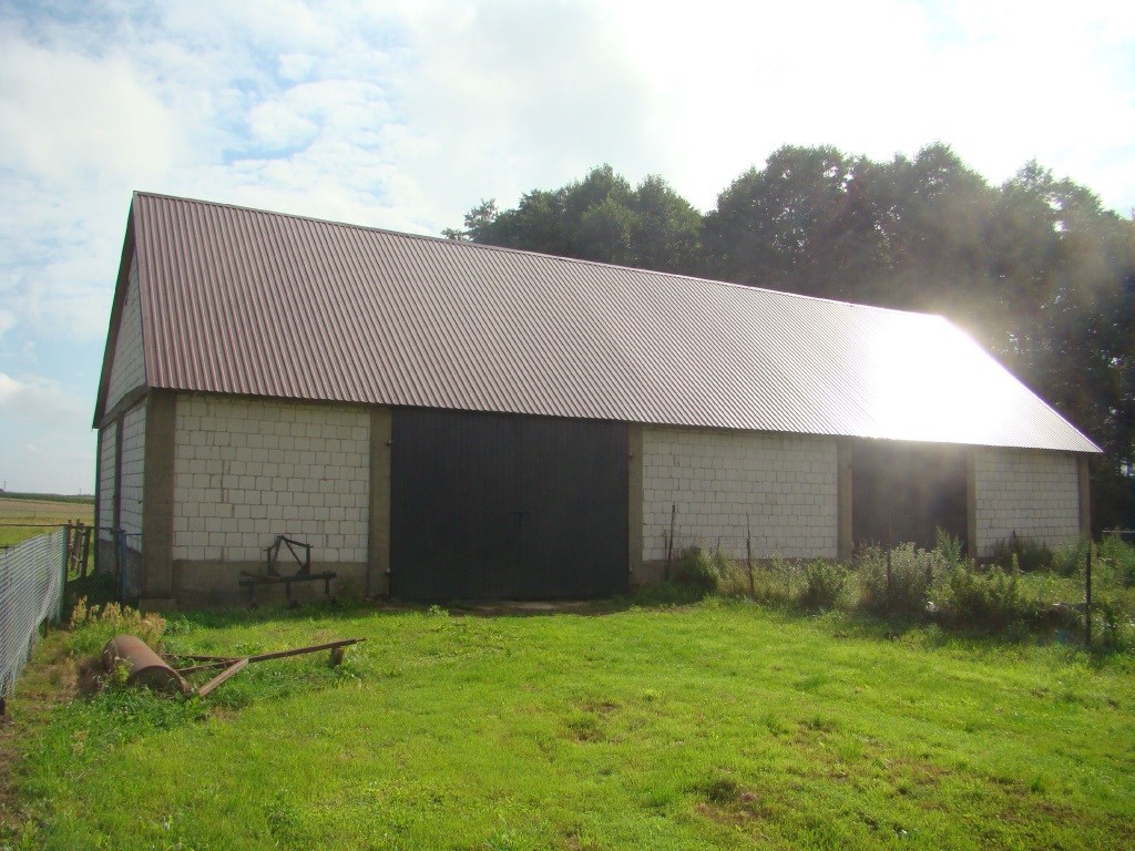Budynek o powierzchni 250m2 w tej chwili pełniący funkcje stodoły. Budynek wykonany z bloczków wapienno-betonowych, posadzka betonowa. Wjazd o wysokości 4.5m.